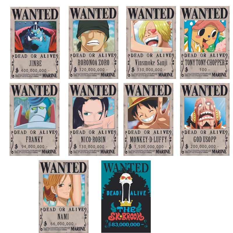 One Piece Wanted Posters 10 42x29cm Cartoon Anime Kraft Paper Posters Wallpaper Stickers Gift New Luffy Jinbe Sanji Wanted Stickers Aliexpress - One piece japan luffy robin chopper pirates crew card flyer wanted poster 7.