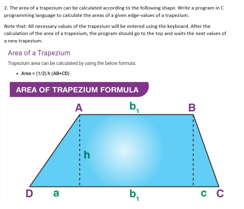 Trending Trapezium Formula Area of trapezium = 1/2 × sum of parallel sides × height. Trapezium Formula : Just trapezoid is scalene trapezium as shown in the figure below.